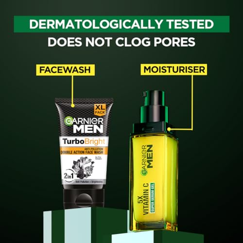 Reveal healthy, radiant skin instantly with the all-new Garnier Men Turbo Bright Super Serum Gel. Infused with 5x vitamin C, menthol, and salicylic acid, the gel-like consistency of the Garnier Moisturizer helps to achieve hydrated, bright skin, while allowing it to breathe all the time. Apart from moisturising the skin, this brightening serum Moisturizer is lightweight in texture to absorb into the skin quickly, reduces dark spots and dullness effortlessly, does not make your skin feel oily or sticky and leaves behind an icy cooling effect. The Garnier Men Turbo Bright Super Serum Gel is dermatologically tested and an ideal Moisturizer for all skin types.