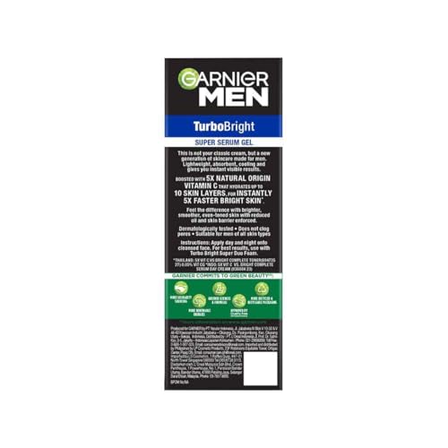 Garnier Men Turbo Bright Super Serum Gel Moisturizer For Men – Enriched With Vitamin C And Menthol For A Brighter, Glowing And Hydrated Skin, Suitable For All Skin Types, 30ml