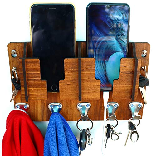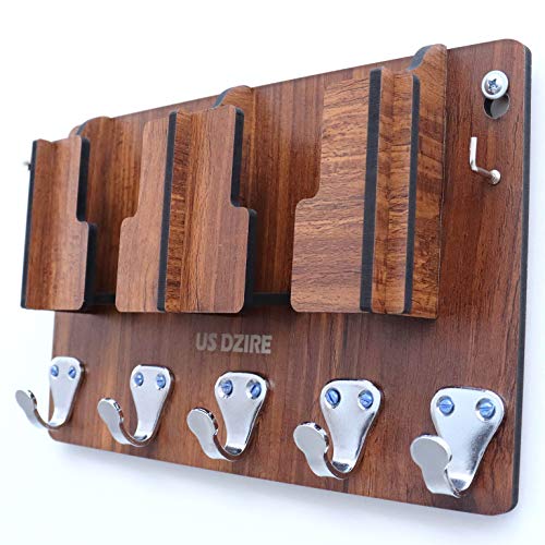US DZIRE – THE BRAND OF LIFESTYLE 827 Antique Mobile Charging Stand Key Holder, Cloth Hanger for Rumal, Toval Suitable for Wall Home Living Room, Kitchen, Wood, Beige, Pack of 1