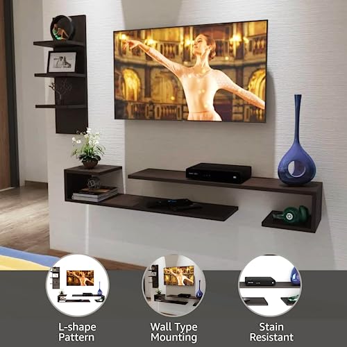 STYLISH AND MULTIPURPOSE: This entertainment centre easily complements any style of room or other furniture because of its simple modern design. It will add a touch of classiness and vitality to your bedroom, living room, media room, office, etc. The wall shelves are functional as well as decorative piece essential for a home or office