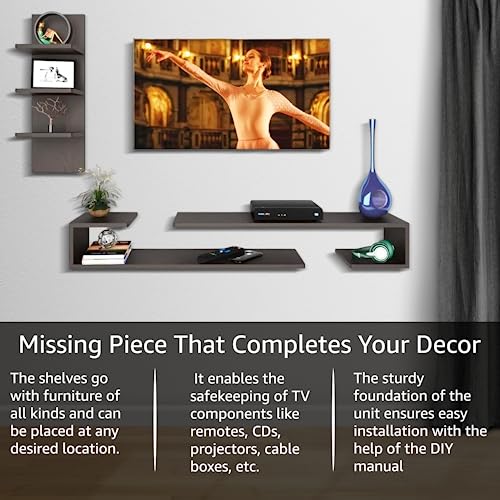 FLOATING TV STAND: The wall-mounted floating tv stand frees up floor space. The open shelves are specially designed to meet your entertainment equipment needs. Perfect for AV components, set-top box, DVD player, CDs, remote, projector, cable box, game console, TV component, books and decorations.