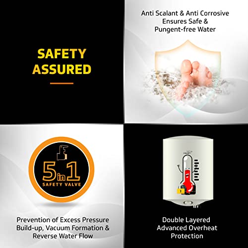 【SAFETY ASSURED】: Advanced Thermostat & Thermal Cut-out Mechanism for Dual Overheat Protection; 5-in-1 Multi-function Safety Valve prevents excessive Pressure Build-up, Vacuum Formation & Reverse Water Flow