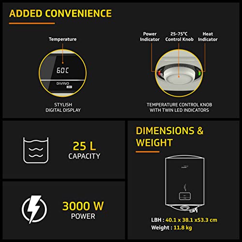 V-Guard Divino DG 5 Star Rated 25 Litre Storage Water Heater (Geyser) with Digital Display and Advanced 4 Level Safety, White