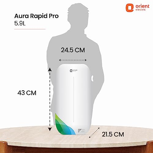 Orient Electric Aura Rapid Pro | 5.9 Litre Instant Water Heater | Stainless Steel Tank | Shockproof | 6.5 bar pressure compatibility | Suitable for low & mid rise buildings| 5 years tank warranty