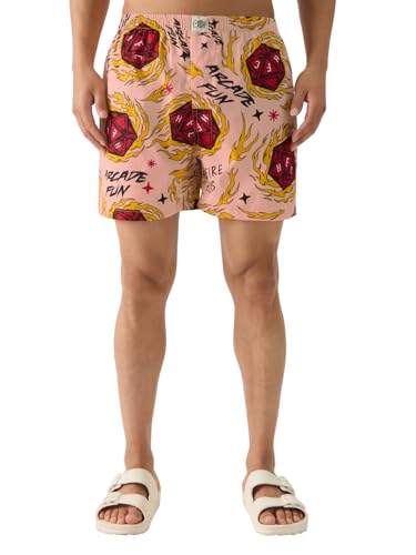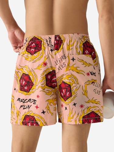 The Souled Store Official Stranger Things: Hellfire Club Men and Boys Pull On Cotton Boxer Shorts Pink Boxer Shorts Men’s Boxers Cotton Breathable Comfortable Elastic Waistband Graphic Printed
