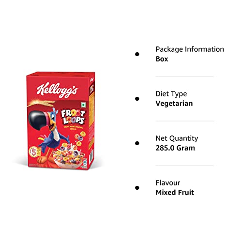 Kellogg’s Froot Loops 285g, Mixed Fruit Flavor | Power of 5: Energy, Protein, Iron, Calcium, Vitamins B1, B2, B3 & C | Crunchy Multigrain Breakfast Cereal for Kids