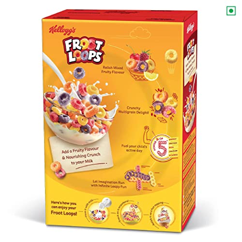 BURST OF FRUITY FLAVOUR IN MILK: Give your milk a delicious twist of mixed fruit flavour with Kelloggâ€s Froot Loops.