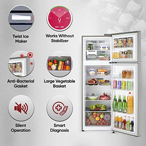 Works without stabilizer (100-310V), Tray Veg (21 Ltr.), Single Ice Maker, Pull Out Tray, Door Basket, Handle Type: Pocket, Anti Rat Bite (Sleeve) }