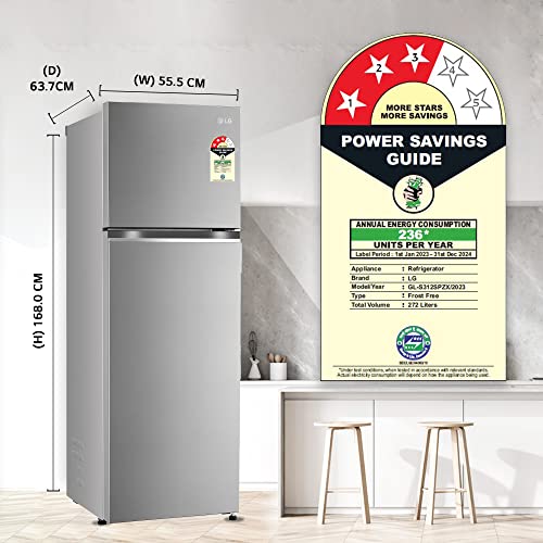 LG 272 L 3 Star Frost-Free Smart Inverter Compressor Double Door Refrigerator (GL-S312SPZX, Shiny Steel, Convertible & Multi Air Flow Cooling, 2023 Model)