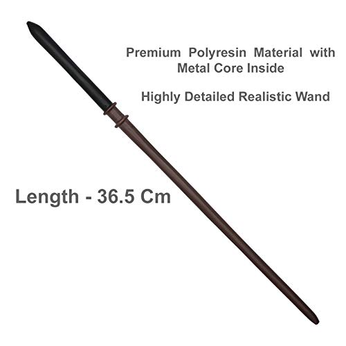 This wand is made of premium Polyresin material with metal (Iron) core inside. In fact, you can use a magnet to check whether it has iron core or not. It’s attracted to a magnet. There are numerous wands claiming that they have metal core inside. But most of them don’t have and they are very fragile. However, this wand we are offering here is high quality polyresin material and actually have a metal core inside