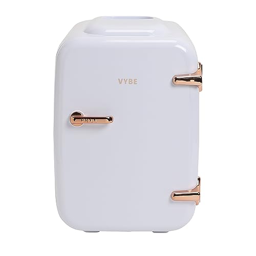 Vybe Mini Beauty Fridge 4 Litre/White:Portable Cosmetics Cooler & Warmer Thermoelectric-AC/DC Car Mini Chiller. Store- Face Mask/Serums, Moisturizers, Toners, Cream, Cosmetics