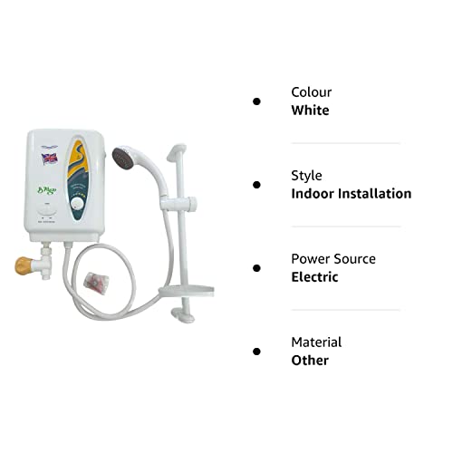Instant Shower Geyser / water heater – Model HM228 for home, Saloons & spa, Gym, Kitchen : 3 kw. With temp control, hand shower & soap dish assembly | inlet valve | color white | most suited for coastal & warm climates