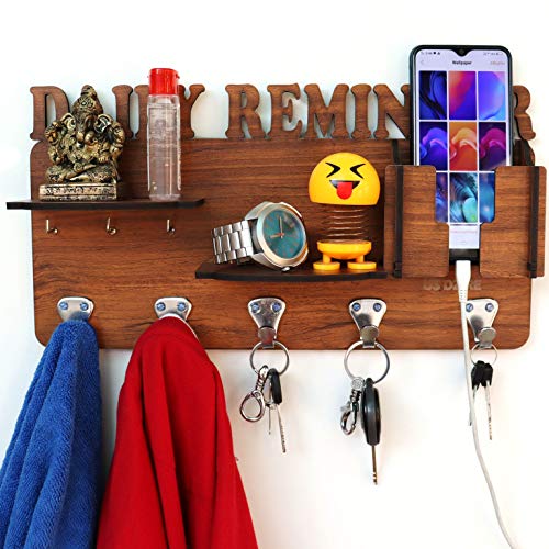 1] MADE : TOTAL PRODUCT MADE IN INDIA. It is designed to Home decorative MULTI KEY hanging & MOBILE PHONE hold and organizes With Shelve and 8 hook all of your personal utility goods with easy access to them.