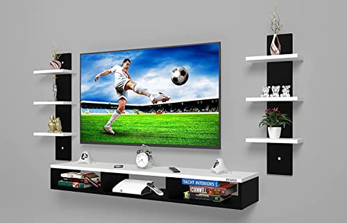 SPACE SAVING – Large Countertops Ensure Ample Storage Space. Wall-Mount Design Doesn’t Take Much Space and Frees Up Valuable Floor Space. The Middle Compartment is Intended to Keep Your Set-Top Box While Books, Decorative Items & 4 Fully Functional Floating Open Shelves for Organize and Display Your Decorative Objects.