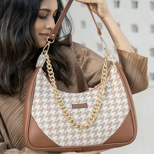 Hobo-Shoulder : A collection of handbags that combines the essence of hobo-bags with the timeless appeal of a Shoulder. Designed to bring aesthetic and functionality together, this bag features one main compartment with two inner pockets and a zippered back pocket that ensures safety as well as quick-access. It comes with a detachable vegan-leather belt and a golden chain belt that adorns the neck of the bag like a piece of jewelry which can also be used as the handle. This beautiful design comes in 5 amazing colors, all that bring your A-game out with it’s classic charm