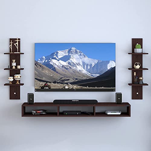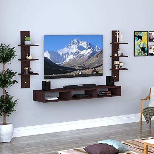 SPACE SAVING – Large Countertops Ensure Ample Storage Space. Wall-Mount Design Doesn’t Take Much Space and Frees Up Valuable Floor Space. The Middle Compartment is Intended to Keep Your Set-Top Box While Books, Decorative Items & 4 Fully Functional Floating Open Shelves for Organize and Display Your Decorative Objects.