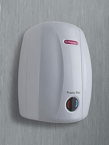 RACOLD PRONTO NEO – ELECTRIC INSTANT WATER HEATER 5L Pronto Neo is an elegantly designed electric instant water heater that elevates water heating to a new standard. Pronto is easy, durable and very fast. Its high-pressure resistance technology makes it ideal for providing hot water in high-rise buildings and with pressure pump systems. This range of water heaters from Racold makes sure you don’t wait for a hot water bath. Pronto Neo instant water geyser is a rare combination of high technology and elegant Italian design which give it a sophisticated style.