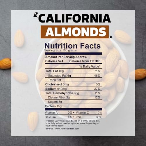 Almonds are naturally low in sugars and are one of the lowest calorie nuts. Almonds are a healthy part of your daily diet. Almonds contain vitamins, minerals, protein, and fiber, and so they may offer a number of health benefits.