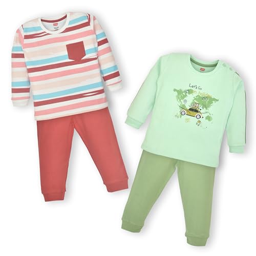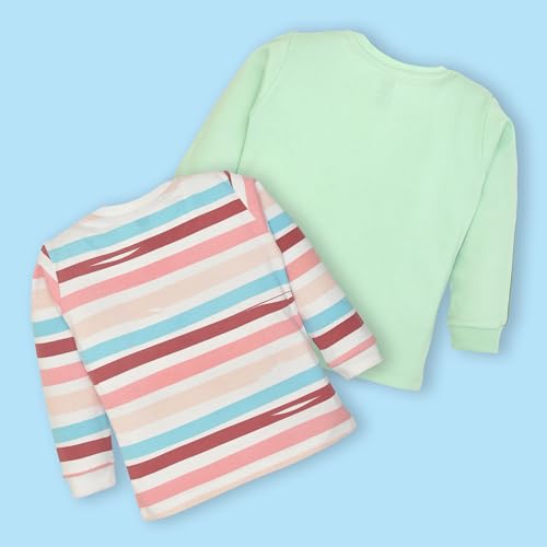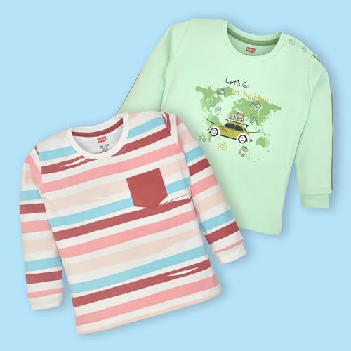 Made of 100% Cotton Knitted fabric makes it comfortable for the baby to wear. The attractive prints make the baby look more cuter. One pack consists of 2 sets of Full Sleeve T-Shirt CoSet.