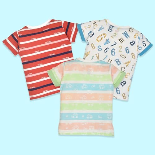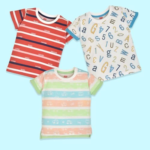 Made of 100% Cotton Knitted fabric makes it comfortable for the baby to wear. The attractive prints make the baby look more cuter. One pack consists of 3 sets of Half Sleeve T-Shirt CoSet.
