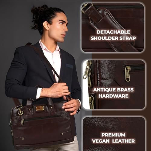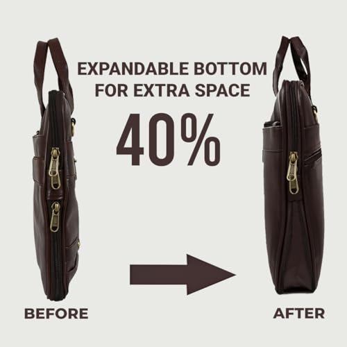 Introducing our stylish and versatile product, crafted from high-quality vegan leather that’s both eco-friendly and cruelty-free. With two spacious compartments, this bag offers ample storage space while staying compact to keep your belongings organized and within easy reach. And if you need even more room, the expandable storage feature at bottom allows you to expand the bag to fit even more items. This bag is designed with functionality in mind – it can easily accommodate a 15.6 inch laptop. Additionally, the bag features a durable handle that allows for comfortable carrying, even when the bag is fully loaded. For added convenience, our product also comes with detachable shoulder straps that allow you to wear it as a shoulder bag, depending on your preference. The straps are adjustable for a custom fit, ensuring maximum comfort during extended periods of wear. Finally, our bag is thoughtfully designed with multiple pockets to keep your small items organized and easily accessible. With all these features, our product is the perfect choice for anyone who needs a reliable and stylish bag that can keep up with their busy lifestyle.We are proud to say that this product is MADE IN INDIA!