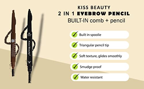 Evohouse Kiss Beauty 2-in-1 Eyebrow Pencil | Waterproof Brow Makeup With Dual-Ended Precision | Long-lasting | Vegan | Cruelty-free Professional Eyebrow Cosmetics Product (Brown)