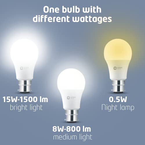 One Bulb with different wattages – 15W Brightest light for reading, 8W for Medium light for relaxing, 0.5W as night light for sleeping (Bulb Cap: B22, 6500K)
