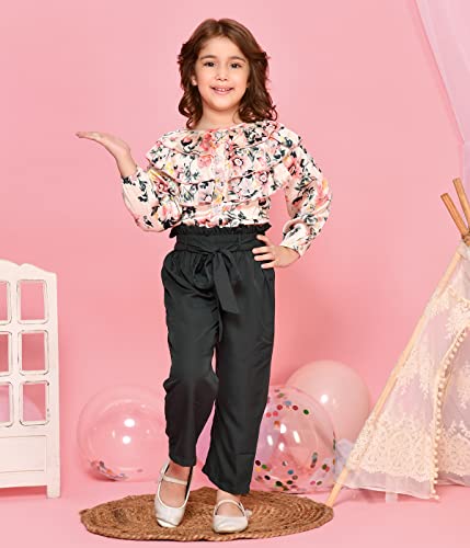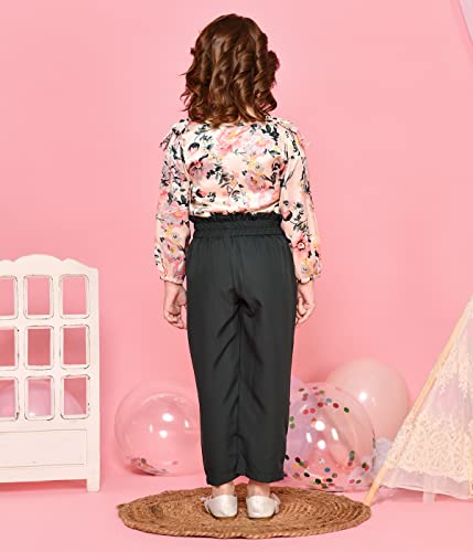 LILPICKS Girls’ Polycotton Floral Print Frilled Top with Trouser Set (Beige & Green)