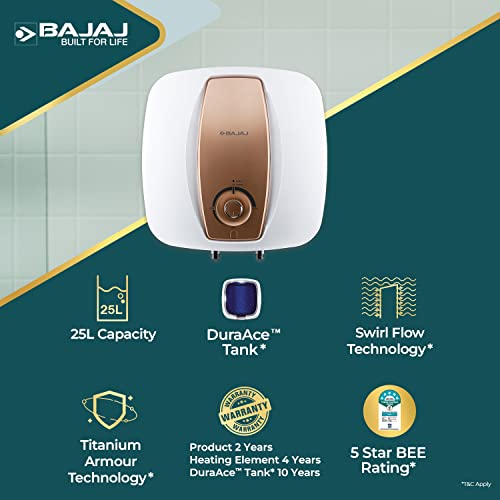 Type: Storage; Capacity: 25 Ltrs; Wattage: 2000 Watts; Pressure: 8 bar; BEE Rating: 5 Star