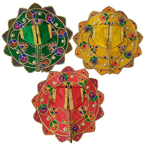 aspkom Laddu Gopal Dress (Set of 3 Ladoo Gopal G Fancy Poshak) Kanha Dresses Collection Store, Mathura (Yellow, Green, Red, Size 1)