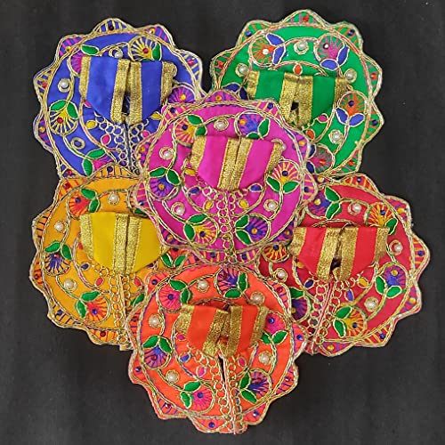 Set of 3 Laddu Gopal Dress (Poshak), in 2 Different Color Combinations of Pink, Blue, Orange as Set 1 and Yellow, Green and Red in Set 2, so this Holi or Navratri Choose Set of 3 Vibrant Color Poshak for Ladoo Gopal Deity (Kanha)