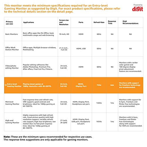 Refresh Rate: 75Hz | Response Time: 4ms | AMD Freesync || Voltage: 15 Volts