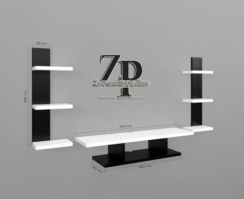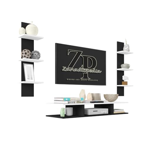 Zanaatopedia Tv’s Entertainment Unit | TV Stand Wall Mount | Engineered Wood LCD Panel | Set-Up Box Holder Cabinet for 43″ LCD (Size:- 25×7 Inches with Ladder Shelf) Colour :- (Black & White)