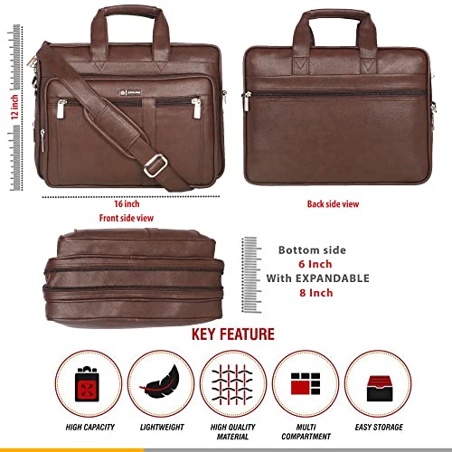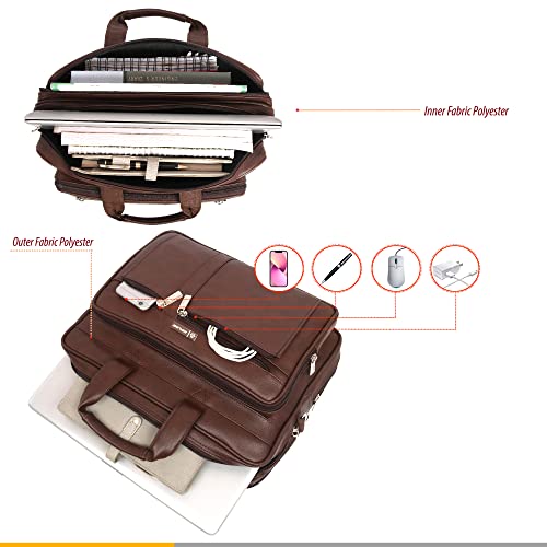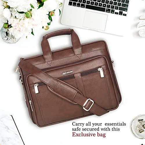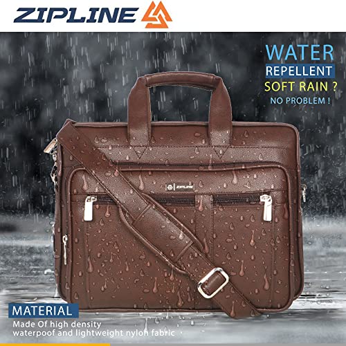 Zipline Office Laptop Synthetic Leather Executive Formal 15.6 inch Laptop & MacBook Briefcase Messenger/Office/Travel/Business Bag for Men Women with Multiple compartments