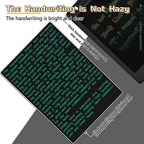 【Quality Material】The LCD writing tablet is made of high-quality plastic material,LEAD-FREE,waterproof and anti-fall.The line is superfine,designed to get accurate sketches,2022 latest LCD pressure-sensitive technology ensures writing is smooth and in high precision.Pefer for Kids, Students, Office Staffs, Construction Workers, Designers,Seniors.
