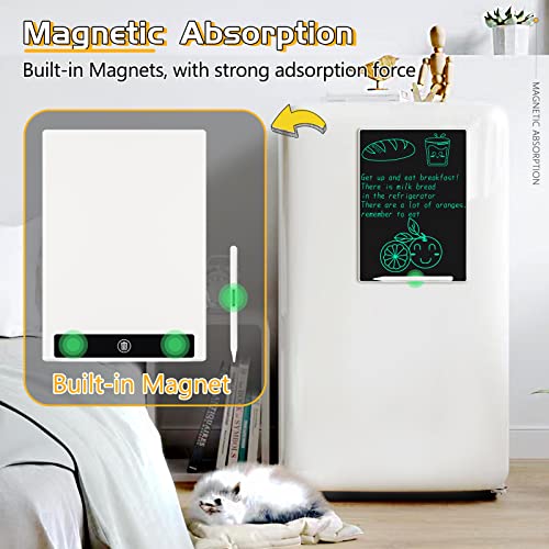 【Perfect Electronic Note】2 built-in magnets on the back,The electronic writing pad has a purchase option with magnetic stickers, hold the board up sturdily on the fridge,a perfect electronic note board for your family,you can use it as the family budget plan, weekly plan, bulletin board on refrigerator, list board. Lightweight easy to carry, can be easily placed in school bags, handbags or any other small bags.