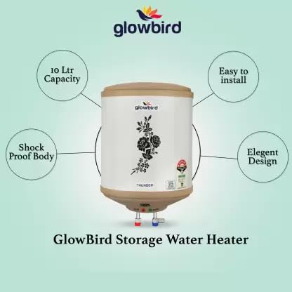 Your search for storage water heater stops here with this premium Glowbird 10L geyser. The tank made of superior Cold Rolled Steel, Protective Magnesium Anode Rod, Heavy guage Copper heating element and also has a Superior nano polymer coated tank. This product is armed with safety featues like Multi-Functional safety Valve, High precision thermostat control and Preset Thermal cutout. It is 8 bar rated pressure ideal for high rise buildings and is a BEE 5 star rated product for additional saving.