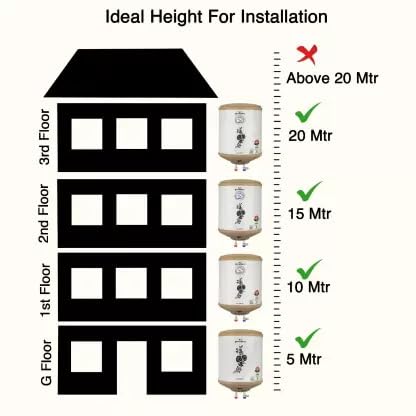 Ideal Height : This Storage water heater can be fit upto 20 meter height Buildings.
