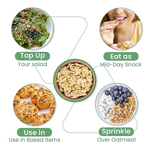 They are considered “brain food” due to its high levels of omega-3.;RICH IN NUTRIENTS: Rich source of Antioxidants, Alpha-Linolenic Acid (ALA).. 100% CALIFORNIA WALNUT KERNELS: Handpicked, fresh, good sized, crunchy and wholesome raw akhort giri