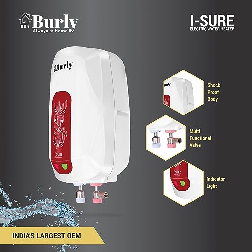 BURLY ISure 3 Litre Instant Water Heater (Geyser) 3KW with 3 Level Safety,5 Star Rated (White, Mahroon)