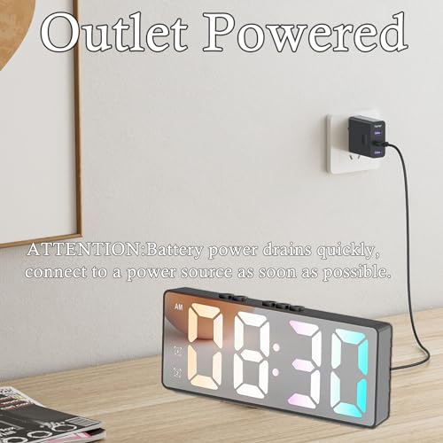 【Outlet Powered & True Battery Backup】 Outlet powered and can be backup with 3*AAA batteries (NOT INCLUDED).Connect the alarm clock to the socket power supply, and at the same time put in the battery, the alarm clock to open the backup function. In case of power failure, the alarm clock will be powered by the battery, and the time, date and other settings will be saved automatically. Note: Battery power consumption is fast, it is recommended to use the socket power supply.