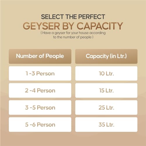 Type: Storage, Capacity: 35 Liters, Wattage: 2000 Watts, Pressure: 6.5 Bars, BEE Rating: 5 Star Rated Energy Efficient Geyser Inner Tank Material: Stainless Steel (SS) Tank with special Anti-Rust coating – 2X Corrosion Resistance; Outer Body Material: Metal (CRCA).