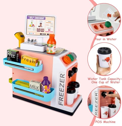 [3-in-1] small cash register integrates the coffee machine, Cash register, and refrigerator functions, immersing your children in entertainment for hours and enjoying interactive shopping, enriching daily life cognition, exercise baby’s hands-on and social skills.