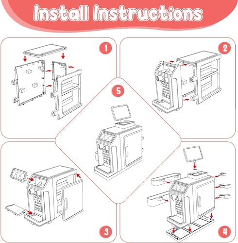 [Easy to Assemble] Clear assembly steps on the package help your kids assemble their new toys easily, doesn’t require much effort,simple to put together. our cash register playset is made of durable, brightly colored, odorless and easy-to-clean materials. With smooth, burr-free edges and ensure safety during play.