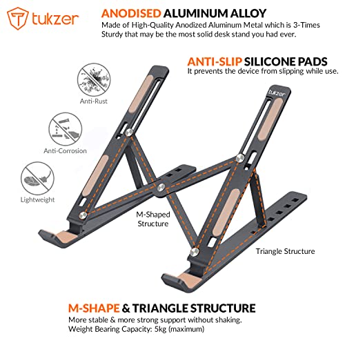 Tukzer laptop stand is made of Anodised Aluminium Metal which is 3-Times sturdy that may be the most solid desk stand you had ever
