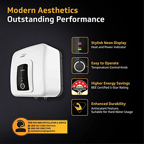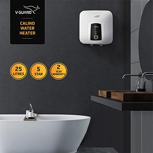 V-Guard Calino 25 Litre Storage 5 Star Water Heater, 100% ABS Body with IPX4 Rating; Free PAN India Installation and Free Inlet Outlet Connection Pipes; White, Wall