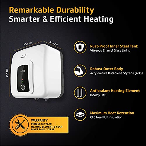 【25 LITRE】Storage Water Heater; 【BEE 5 STAR RATED】: Extremely Energy Efficient with Extra Thick & High Density PUF Insulation for Maximum Heat Retention