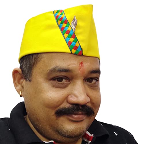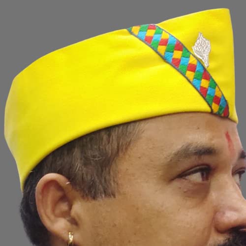 The Beautiful Handcrafted Yellow Uttarakhand Pahadi Topi by cottage villagers for ideal use of Haldi Hath or religious gathering Very Good for Basantoutsav Basant Panchami for any Puja / Bhagwat Katha.