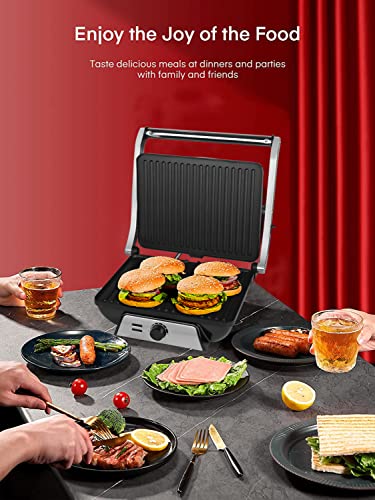 🎁【180°MULTIFUNTIONAL OPENING】The multifunctional grille can be opened 180°. Perfect as a Panini maker, sandwich maker and electric grill, you can easily cook sandwiches, as well as grilled steaks, fish and vegetables. Two big size plates provide more cooking space to meet the different food needs of large families.