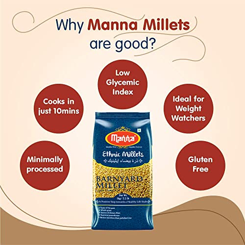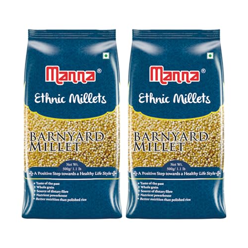 Manna Barnyard Millet (Unpolished) Natural Grains, 1kg (500g x 2 Packs) – (Khira/Swank/Kuthiraivally/Udalu/Kodisama/siridhanya) | Native Low GI Millet Rice | High Protein & 100% more fibre than rice